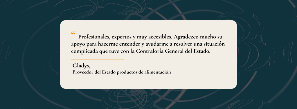 «Ponemos a su disposición un equipo experto en Contratación Pública y defensa jurídica ante la Contraloría General del Estado.»
